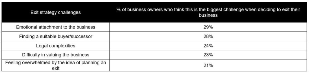 - Emotional attachment to the business is the biggest challenge for small business owners deciding to exit their business